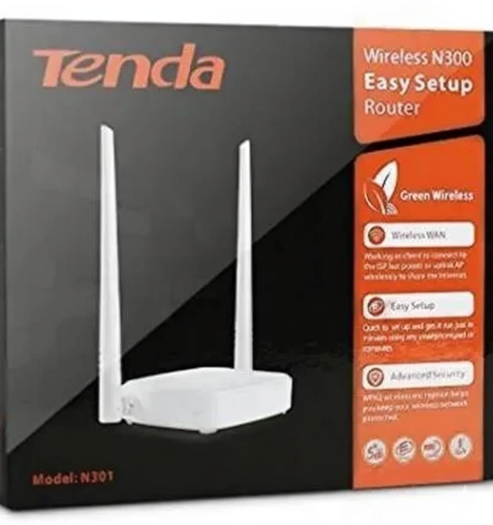 The image shows the box for the Tenda Model: N301 Wireless N300 Easy Setup Router.